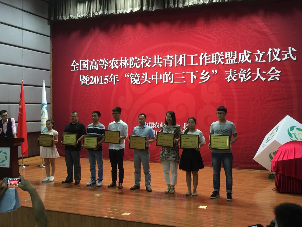 在表彰大会和授牌仪式上,江南电子网站(中国)官方网站理学院组建的2015年暑期“三下乡”国家级重点社会实践团队获得表彰,其在全国5000支队伍中取得了105名的好成绩,该团队撰写的《暑期实践硕果香、理学学子绽东方》社会实践报告和实践成果展被人民网全文刊载。