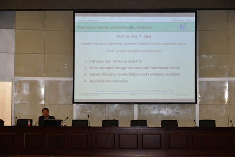 访问期间,丁永健教授在报告厅为电气与控制工程学院师生带来了题为《Functional Safety Analysis and Application》的学术报告。学术报告中丁永健教授介绍了国外工业自动化的最新发展动态,分析了风险导向设计过程和安全完整性等级分类,并结合核电、高铁等具体实例对可靠性分析方法进行了深入浅出的讲解。学术讲座完毕后,丁永健教授解答了在座师生提出的工业自动化方面的技术问题。丁永健教授还与电气与控制工程学院领导与博士教授就科研合作、人才培养、学生互换等方面的问题进行了进一步交流。