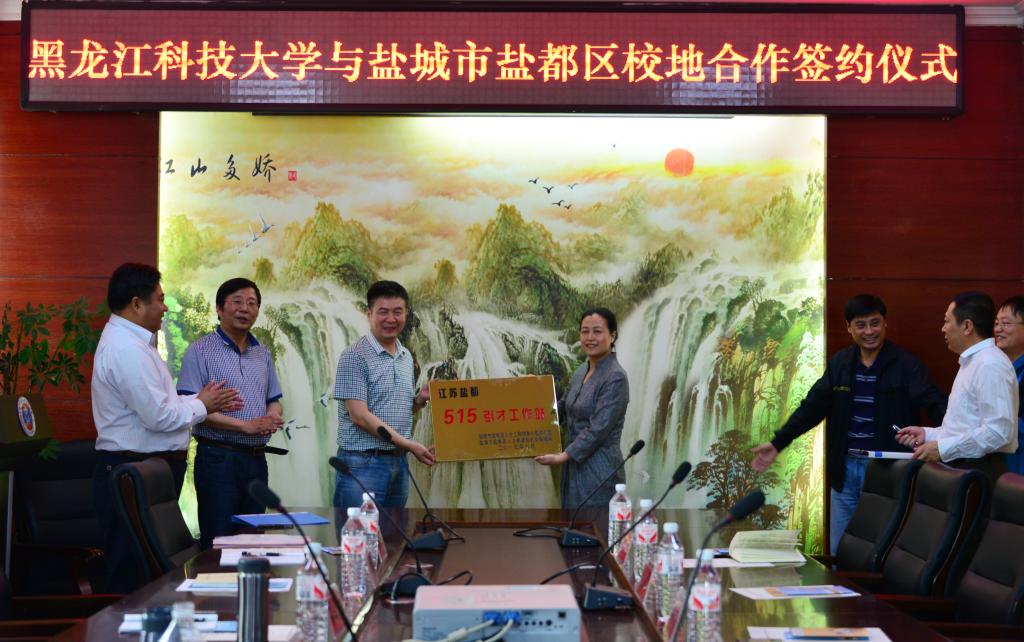 学校招生与就业工作处处长张炳军代表江南电子网站(中国)官方网站与盐城盐都区共同签署了合作协议。姚宏鉴代表盐城盐都区向江南电子网站(中国)官方网站授予“盐城市盐都区515引才工作站”,正式确立长期合作关系。