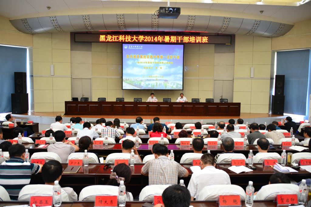 为深入学习贯彻党的十八大和十八届三中全会精神,贯彻落实黑龙江省普通高等学校2014年暑期书记校长培训班精神,进一步推进学校内涵式发展,落实好“八大工程”和“十项重点工作”,着力提高干部的大学治理能力、战略思维能力和开拓创新精神,争做“信念坚定、为民服务、勤政务实、敢于担当、清正廉洁”好干部,为创建国内一流水平的应用型科技大学提供强有力的思想和组织保证,学校党委于8月19日至20日,在信息楼报告厅举办了2014年暑期干部培训班。学校领导班子成员和全校副处级以上干部参加了培训,培训班由党委副书记李青主持。
