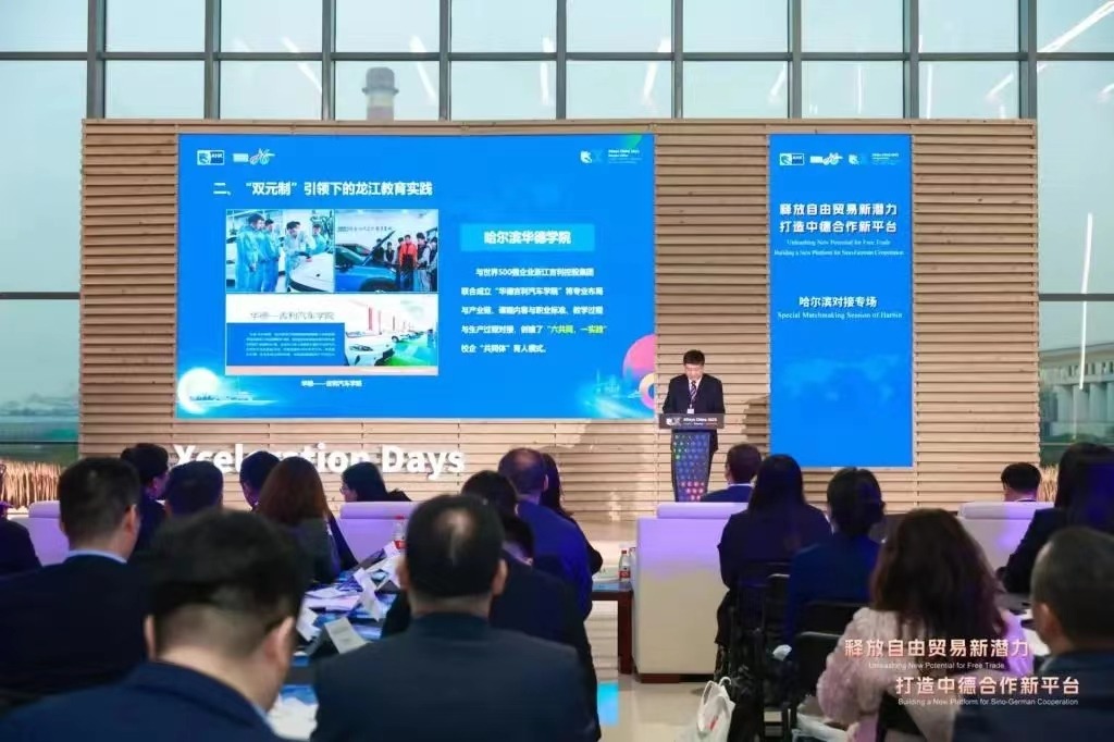 14/ 2023-11校长孟上九出席第六届中国国际进口博览会2023德中经济峰会哈尔滨对接专场并作主旨发言 -